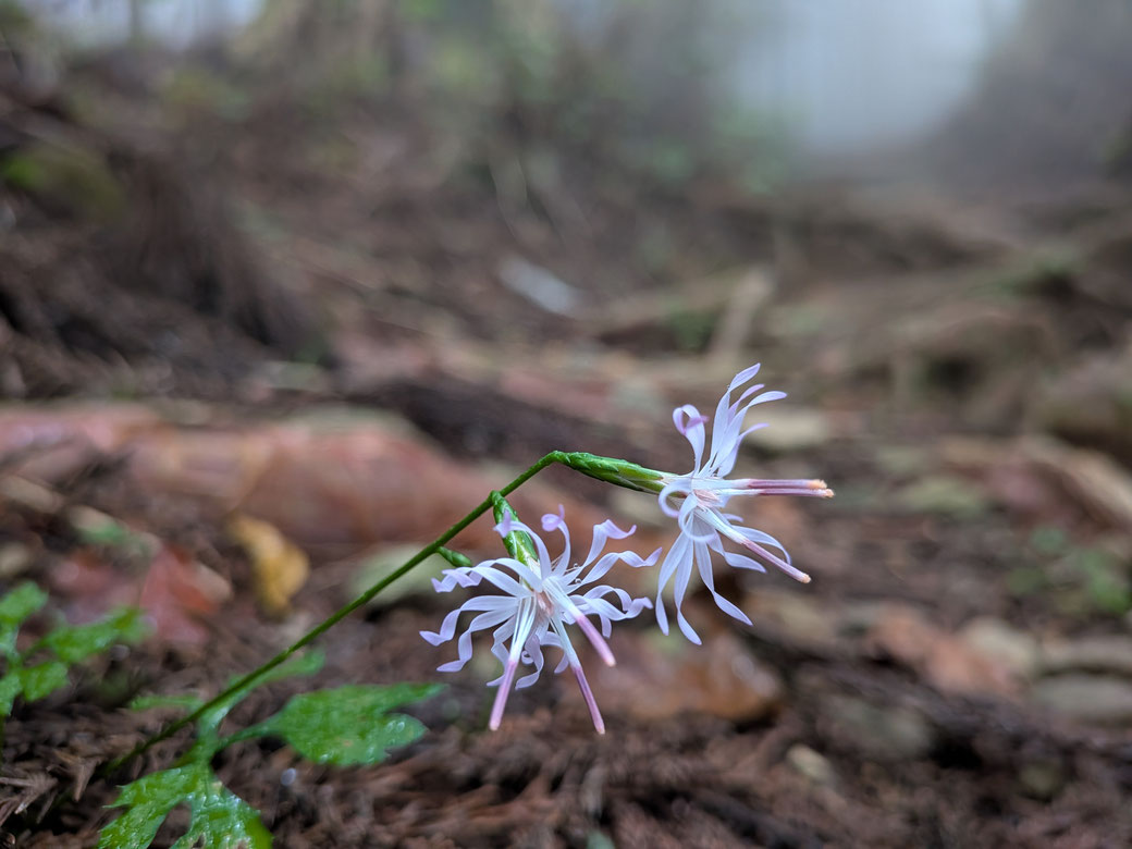 天気は怪しいし、山頂は雲の中だったので迷いながら登山口に向かったけど小指の爪ほどの大きさのエンシュウハグマを見る事が出来た!ねじれた風車みたいな花弁☝ナゼこんな形になったのか不思議だな~。