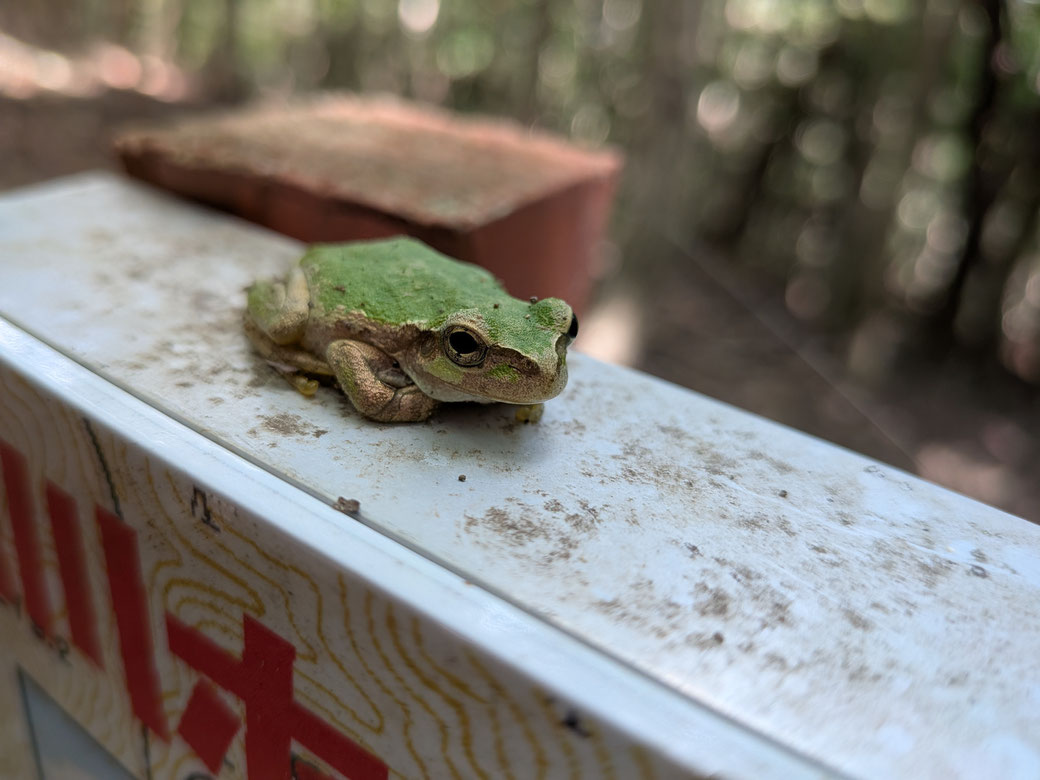 📷蛇口を捻るとカエルが飛び出してきた☝鳥川の森で最近キノコをよく見る。みんな猛暑にビックリだね。