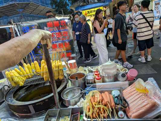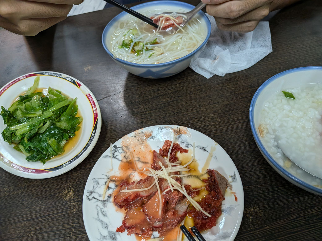 電車移動して朝食は お粥・米粉麺・野菜炒め・唐揚げの甘辛タレ☝これを3人で食べて600円!観光客は利用しないお店らしく現金のみ。全部味が違って美味しい(台湾で不味い物は無い)
