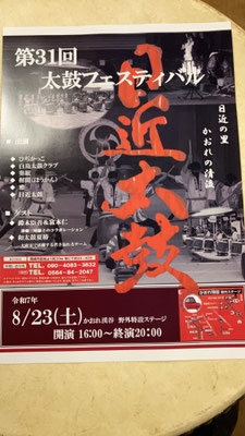 📷次は日近の太鼓に出店☝午後4時~8時まで10チーム程が松明を焚いた舞台で演奏は大迫力、是非見て欲しい