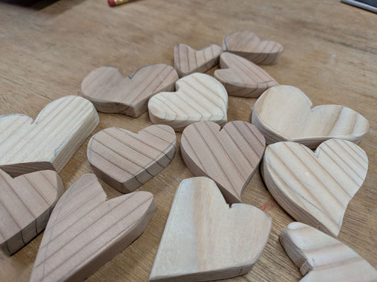 2025/08/26 午前中は木工 出店予定は無いけどワークショップの準備。板に手書きでハートを書き 機械でカット☝アールの部分は難しく工房オーナーにコツを教えてもらいながら、14個作る頃は(この作業も楽しいな!)といつもの悪い癖。更に削って着色したらハートに見える。🚩かんぱちとサーモンのせちらし寿司・お稲荷さん・水菜とカニカマと油揚げのナムル・餃子 tagPlaceholderカテゴリ: コメントをお書きください コメント: 0